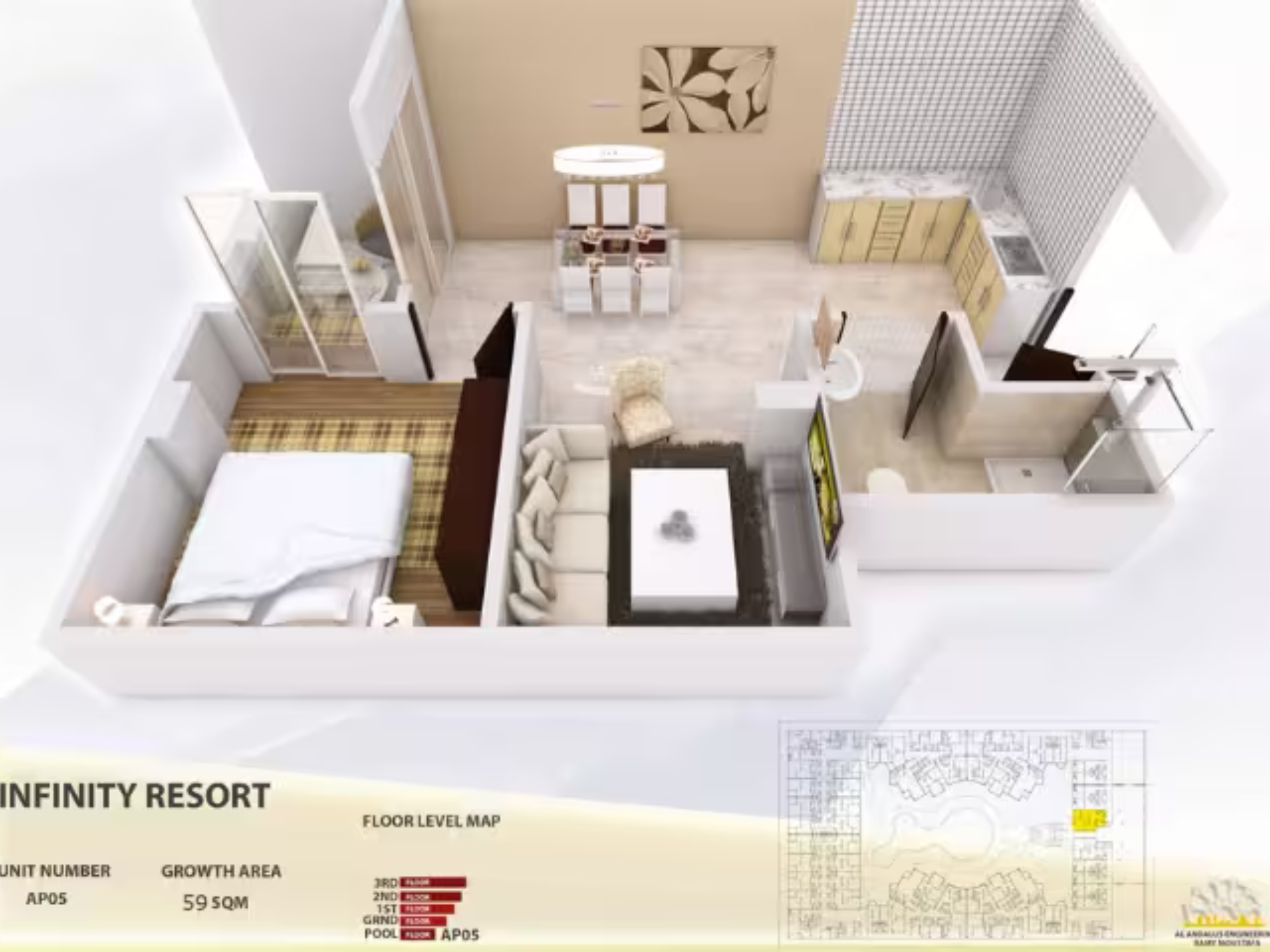 • Spacious 1-bedroom layout at pool level
