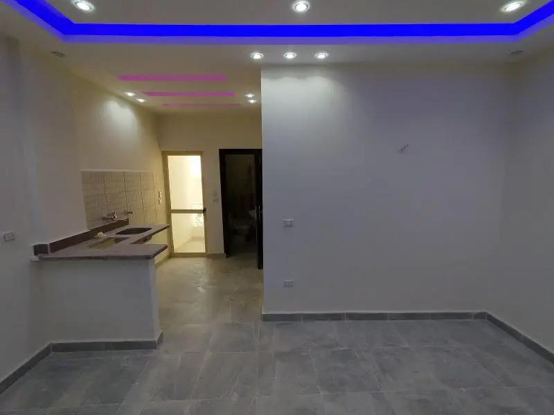 Brand new 1 bedroom apartment is located on the fourth floor of a residential building in the New El Kawther area.