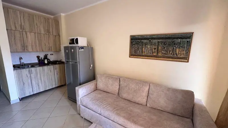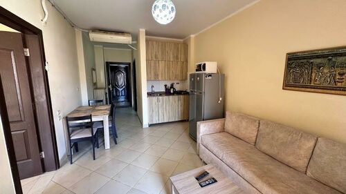 The apartment is fully furnished and equipped with 2 air conditioners, a refrigerator, a microwave oven, a TV, a water heater, as well as furniture and a kitchen.