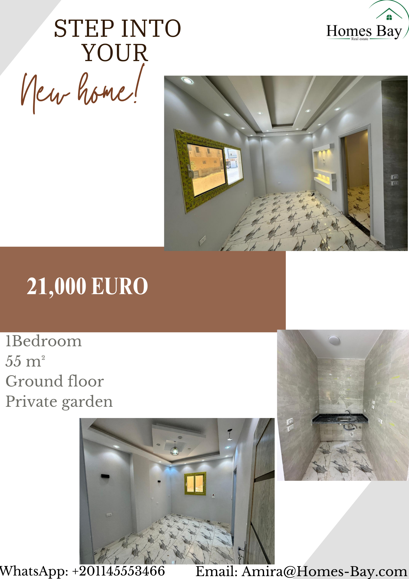 Size: These 1-bedroom apartments span 55 square meters (SQM).