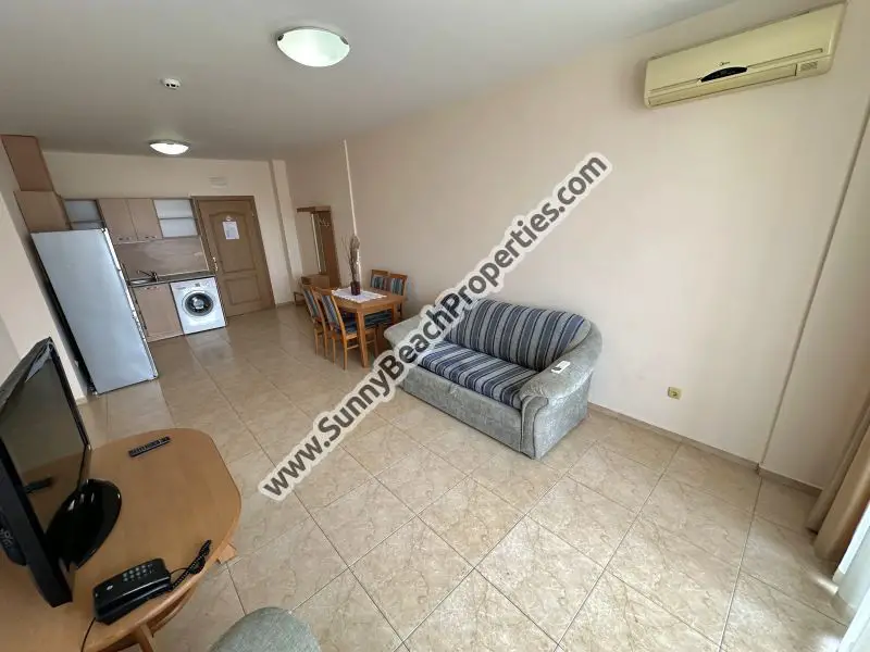 Exclusive Top 2024 Bulgarian Beach Real Estate Deal of the Week! Top 2024 Reduced price for Quick Sale At Price Below the Property Market Value 73500€! Spacious furnished 1-bedroom / 1.5-bathroom apartment for sale in year-round enclosed complex Trakia Plaza in the absolute tranquil area of the complex, 200 meters from the beach in Sunny beach, Bulgaria, next to year-round supermarket T-Market, 200 meters from year-round supermarket Mladost, in the center of Sunny beach, Bulgaria and 500 m. from downtown Sunny beach and hotel Kuban. The apartment is ideal for year-round living, holiday home, second home, summer holiday and/or rentals. All documents ready for closing the Deal in front of the notary! Recent Video from the apartment on the link: https://www.homeinbulgaria.com/en/offer/104483.html