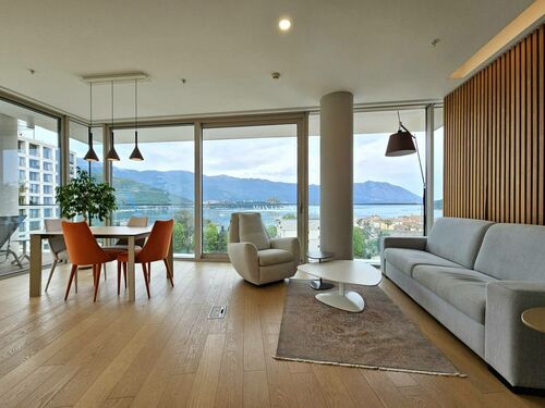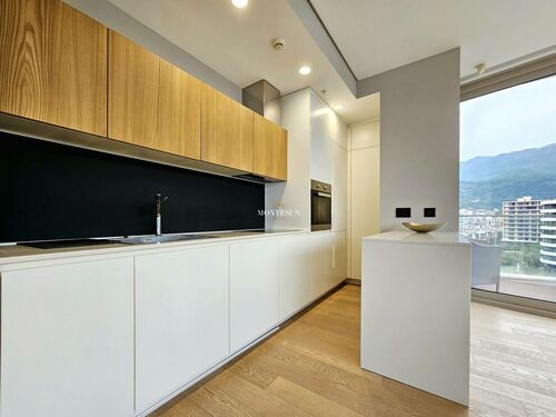 A luxury 2-bedroom apartment for long-term rent in the Dukley Residence complex, located in the very center of Budva on a quiet street.