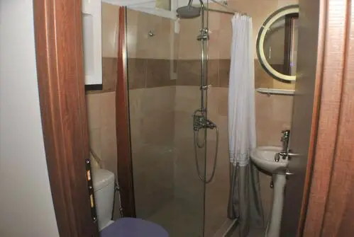 Shower room with shower cubicle, wash basin and WC.