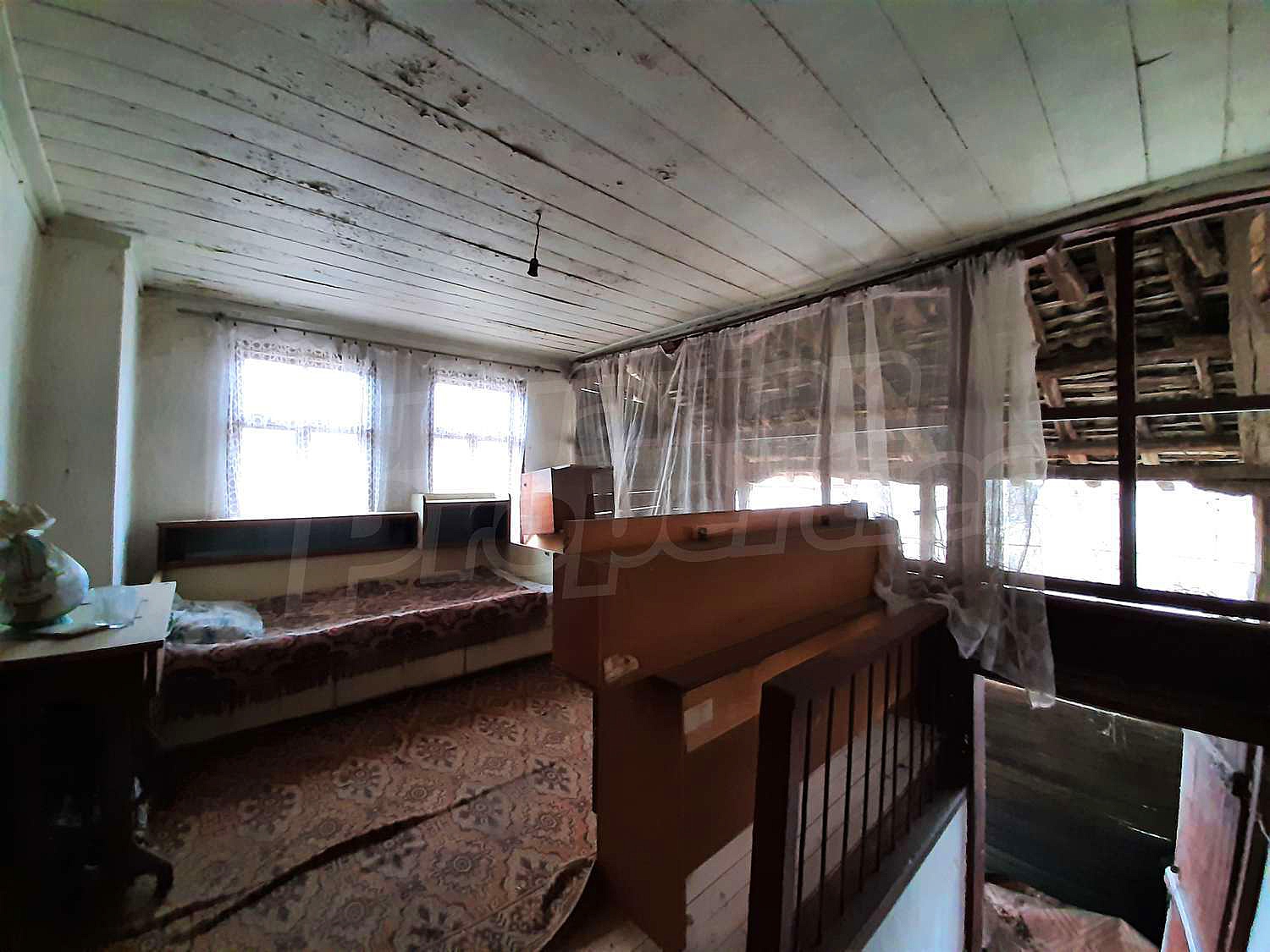Flooring - screed; walls - whitewashed; windows - old wooden frames. A
