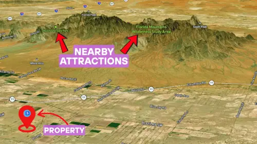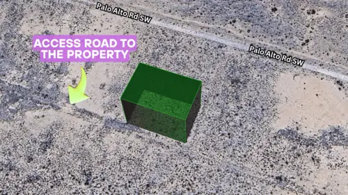 The property is 0.53 acres in Luna County, New Mexico. It has flat desert terrain, is accessible via county-maintained dirt roads, and does not have flood zone concerns.