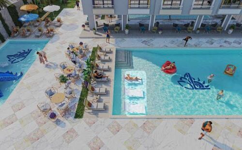 Aqua-park (children’s water slides and play structures) and dedicated kids’ play area.