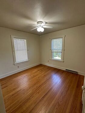 This charming two-bedroom, one-bath home features beautiful hardwood floors and central air. The living room is spacious and bright, while the functional kitchen offers ample cabinet space. Enjoy the serene sunroom with large windows overlooking the yard. Both bedrooms are cozy and inviting, and the updated bathroom is modern and stylish. Ideal for comfortable living, this home is a perfect blend of style and practicality.