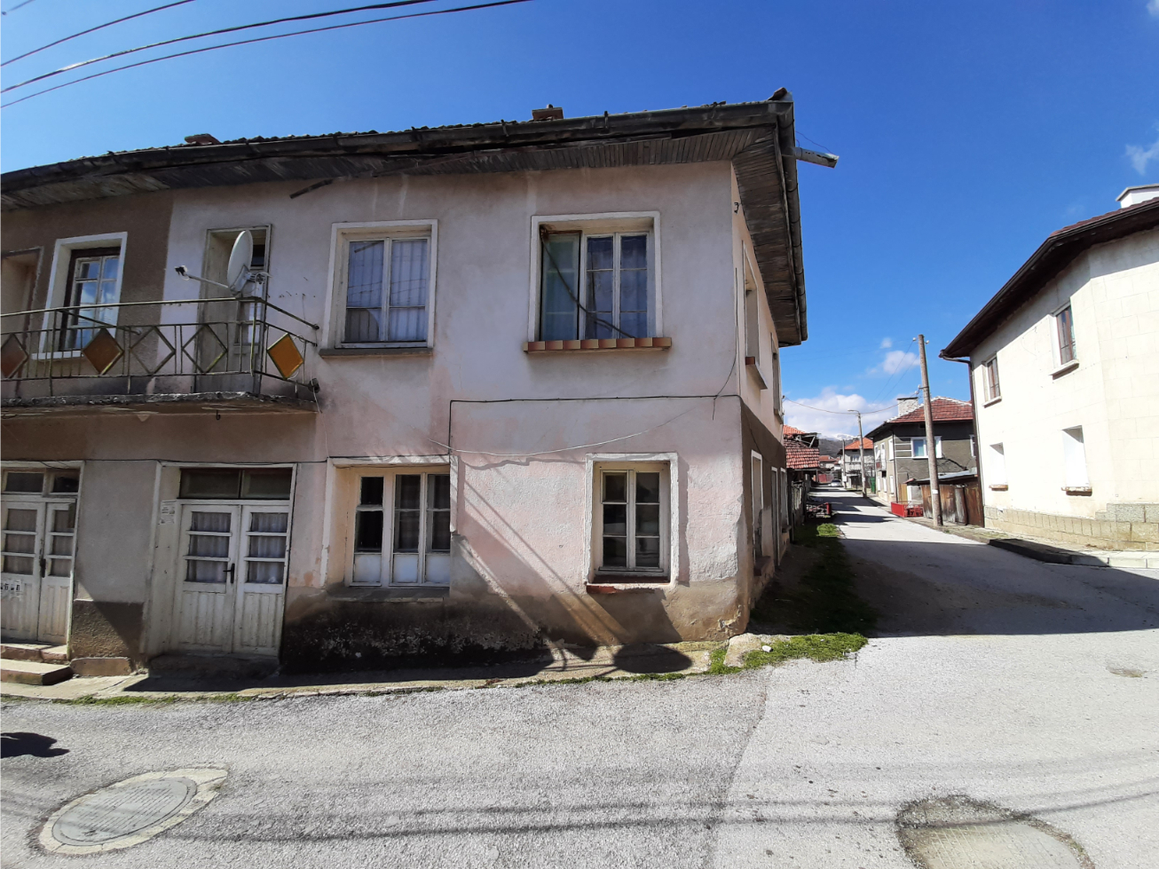 Country house with plot of land and nice location situated in a village in the mountains two hours away from Sofia and Sofia International Airport. The property is located on a quiet side street less than 50 meters away from the main square, school, shop, bar, library, post office, mayor`s office and small river. The house has two floors connected via internal staircase. The ground level consists of lobby, living room, dining room with kitchenette, bedroom, corridor and shower room. The second floor has three bedrooms, corridor and balcony which overviews the near properties. The garden is located at the back of the house where one can find the barn and storage. The property provides partial views towards the forest and mountain peaks located outside the village. The place had been empty for more than six years now so it requires certain amounts of renovation and work in order to be brought back to modern day living standards. The village is situated in a beautiful and peaceful mountain area within about two hours of driving away from the national capital city Sofia. The nearest town is about 20-25 minutes away by car and is the regional capital city for the area thus providing administrative services as well as many other amenities such as library, schools and kindergartens, hospital, dental care, police station, fire station, train and bus station, many different shops and stores for everything from daily items and food through clothing, shoes, construction materials, tools and spare parts, furniture and much more. The village is served by bus line which goes to that town and back twice a day. Nice rural property with great potential and location at a fair price.