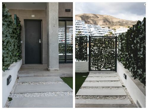 Dispone de dos amplias terrazas orientadas a dos lados del edificio - una con vistas panorámicas de Benidorm y la costa mediterránea, la otra con jardín y vistas a las montañas y piscina.