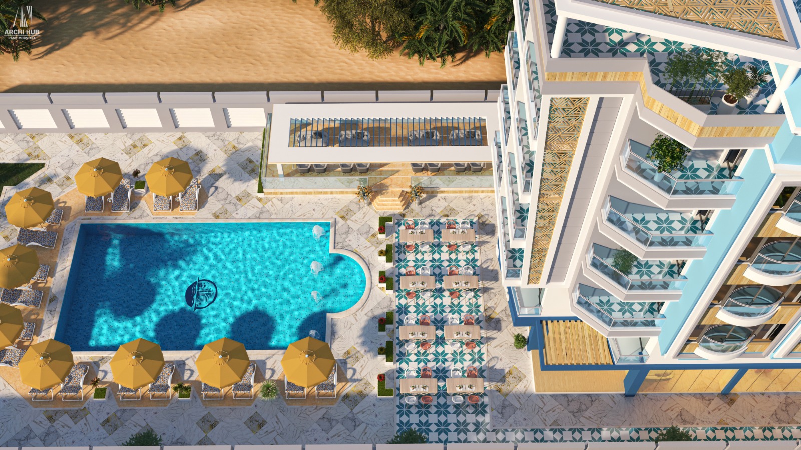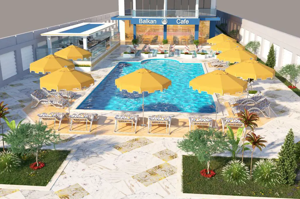 swimming pool and cafes