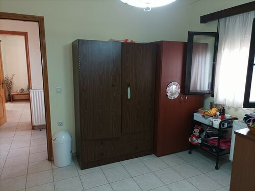 The property is developed on the ground floor and consists of two comfortable bedrooms, a bright living room that serves as a reception area, a functional kitchen, and a full bathroom. The tiled floors, energy-efficient aluminum frames with double glazing, and energy class C ensure modern comfort. The autonomous oil heating with full soundproofing and thermal insulation makes it economical and efficient. The property is painted, corner, façade, airy, sunny, and bright, with screens and a storage space.