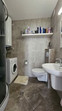Layout: spacious entrance hall, cozy living room with kitchen, a balcony, one bedroom, bathroom with spacious shower, storage room/dressing area