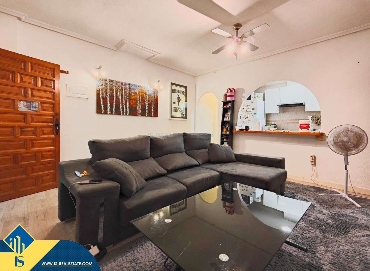 3-room partly renovated apartment, in the province of Alicante, Spain, in the town of Torrevieja, Playa del Cura district, with a total surface of 75 m², 700 metres to the sea, 45 kilometres to Alicante airport. Near the property there are shops, restaurants, pharmacies, bus stops, petrol stations, green areas, cafes