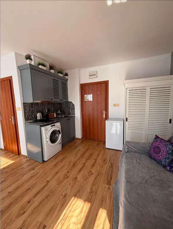The complex offers the following amenities: a large outdoor swimming pool for adults with a jacuzzi and underwater massage beds, a pool bar, a children's pool, a children's center for hourly child care and educational activities, a lobby bar, a spacious restaurant with an outdoor terrace overlooking the pool, reception, office and parking. The complex is open all year round and is located in the quiet part of Sunny Beach, Chaika district. The complex has a permit for use /Act 16/ from 2009. Individual electricity bills - household electricity.
