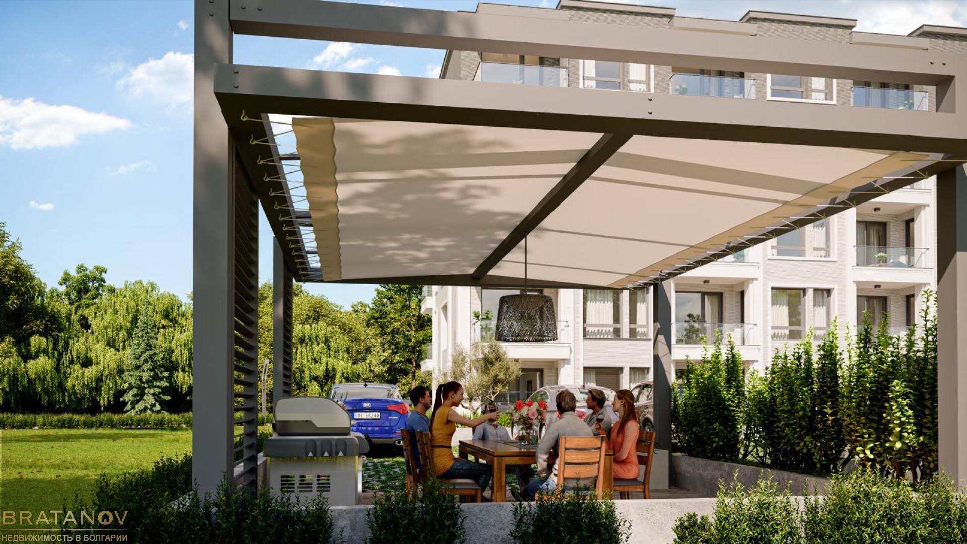 This is a residential building with a luxurious design, high-quality construction, and a monolithic structure. The complex is ideal for year-round living. The building includes studios, one-bedroom apartments, parking spaces, and underground garages. There will also be a barbecue area and a children’s playground on the premises.