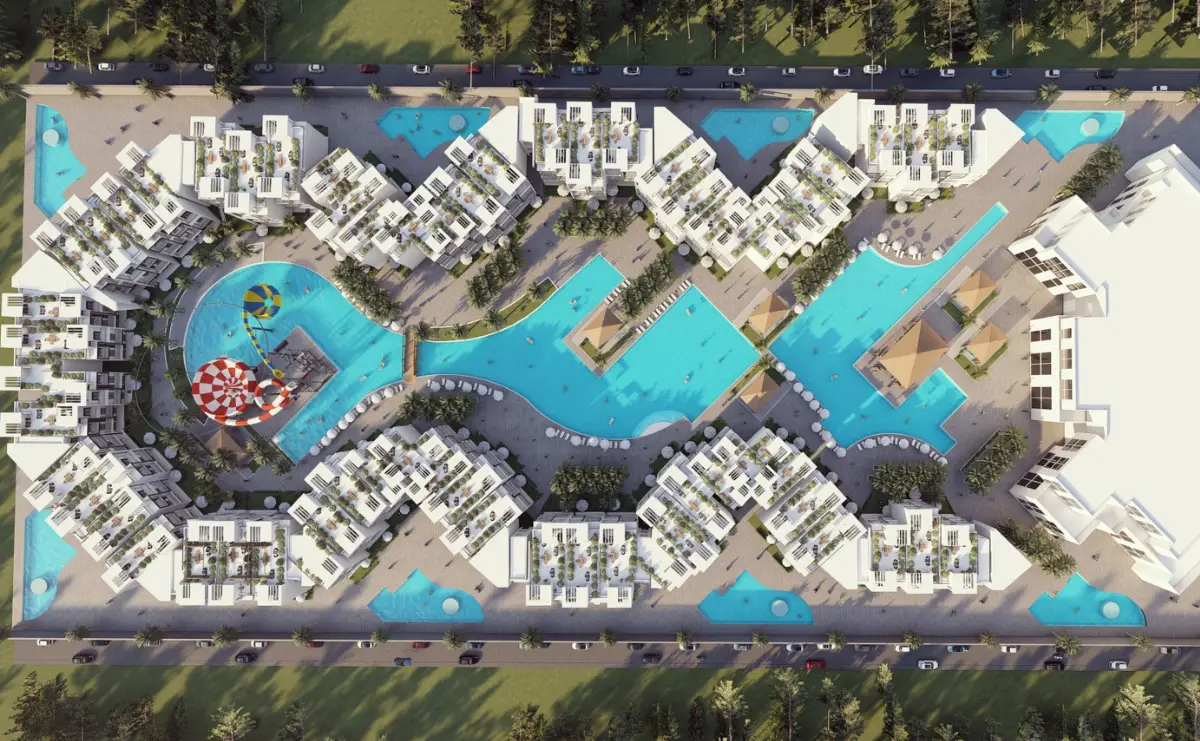 spanning 54.000 m². the project dedicates over 80% to greenery. pools. and open spaces. with 2–3 floor buildings and a wide selection of fully finished units—studios. 1–3 bedroom apartments. duplexes. penthouses. and villas—the resort is ideal for both investors and residents.