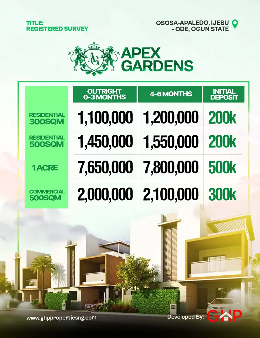 Discover the pinnacle of refined living at Apex Gardens Estate — where dreams take root and flourish. Your future begins here.