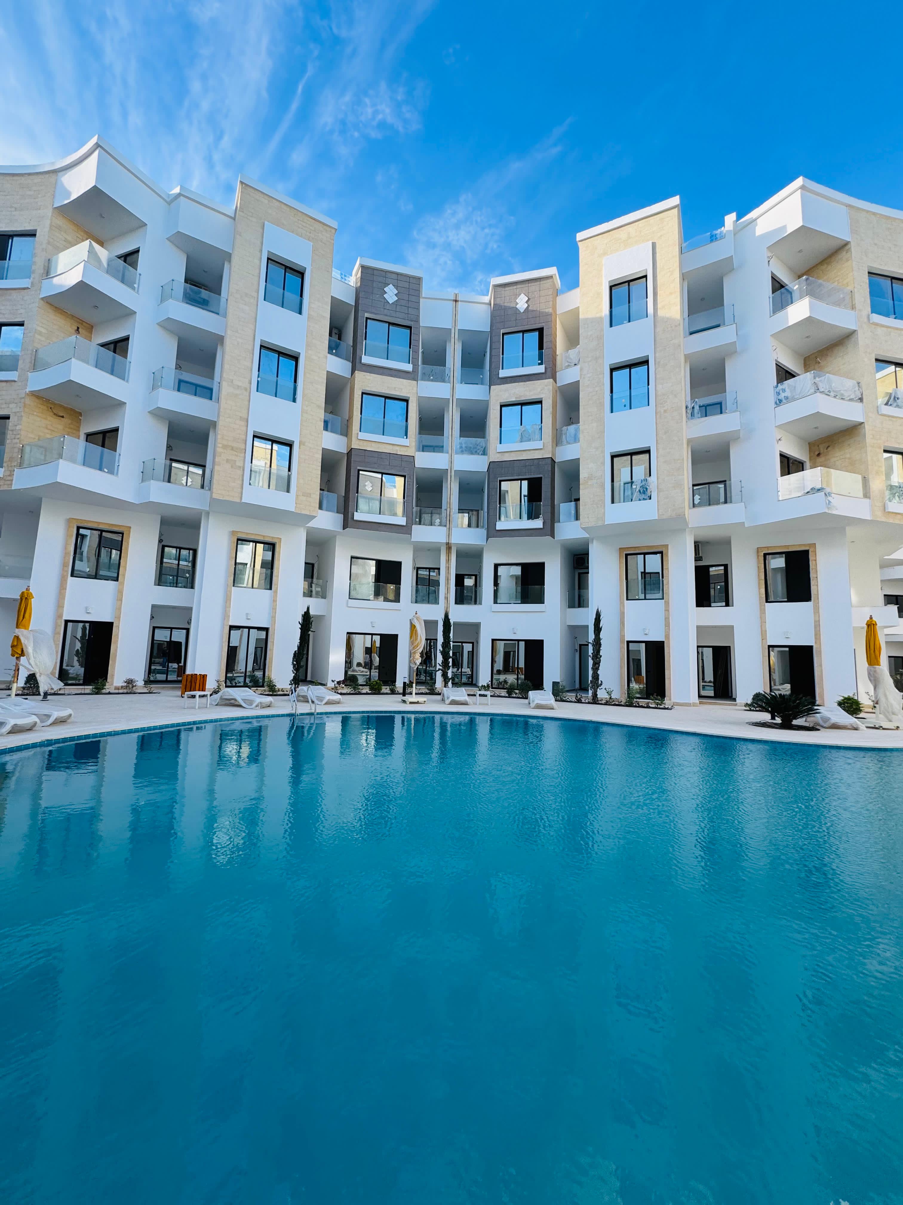 The project features beautifully designed apartments with spacious balconies, high-quality finishes, and stunning views of the sea or swimming pools. Residents enjoy a range of amenities including swimming pools, landscaped areas, 24/7 security, elevators, and easy access to beaches, supermarkets, cafes, and downtown Hurghada.