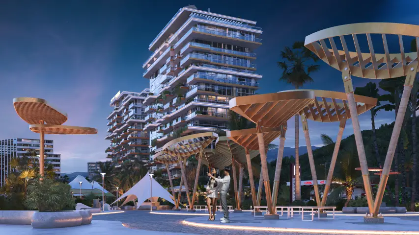 Designed by NEXT Group, this residential and mixed-use development lies directly on the first coastline, offering breathtaking sea and mountain views. With natural tones, modern lines, and sustainable materials, NEXT Gardens embodies a new lifestyle concept — a balance of wellness, nature, and sophistication.