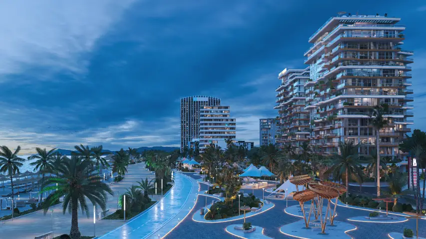 NEXT Gardens redefines the meaning of beachfront property in Georgia, merging the serenity of the mountains with the calm of the Black Sea. Located in Kvariati, one of Adjara’s most scenic and eco-friendly coastal zones, the project offers a refined architectural design enhanced by an elegant olive garden — a symbol of harmony and longevity.