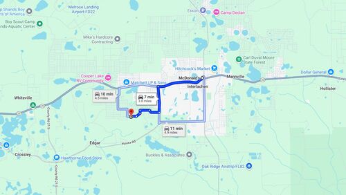 Minutes to Essentials – Only 3.6 miles (8 min) to downtown Interlachen for groceries and dining, and 26.8 miles (34 min) to Gainesville’s shopping, healthcare, and entertainment.