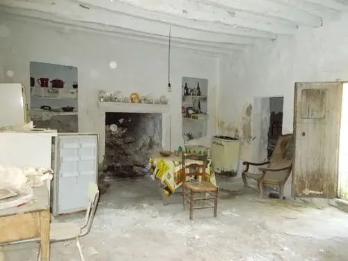 Large dining room with fireplace, 2 bedrooms, 3 rooms to restore and an interior patio of 25m2.