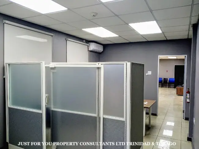 TT$7000 Neg This renovated upper floor commercial space ( over 1200 sq ft ) is conveniently located in a prime commercialized area in San Fernando Trinidad. It contains an open layout; is tiled throughout; has AC ; possess one enclosed office; two washroom facilities; an emergency exit; CCTV security cameras & adequate water storage; this property has road frontage; is easily accessible within walking distance to all amenities & is being leased partially furnished or unfurnished ;