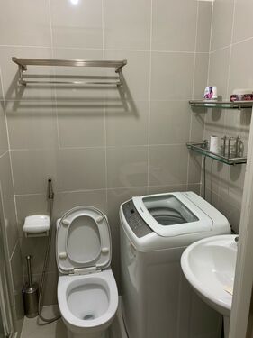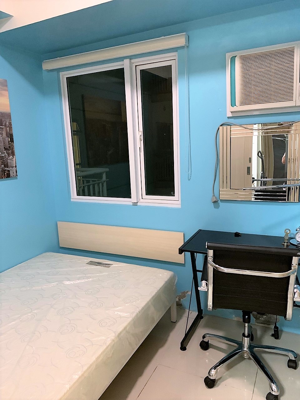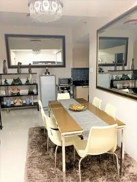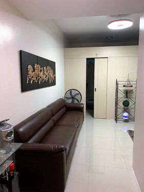 2 Bedrooms with Balcony facing amenities. Floor Area: 50 sqm. Fully Furnished with internet/WiFi, cabled TV, hot/cold shower, a large split-type air conditioner, tower fan, washing machine