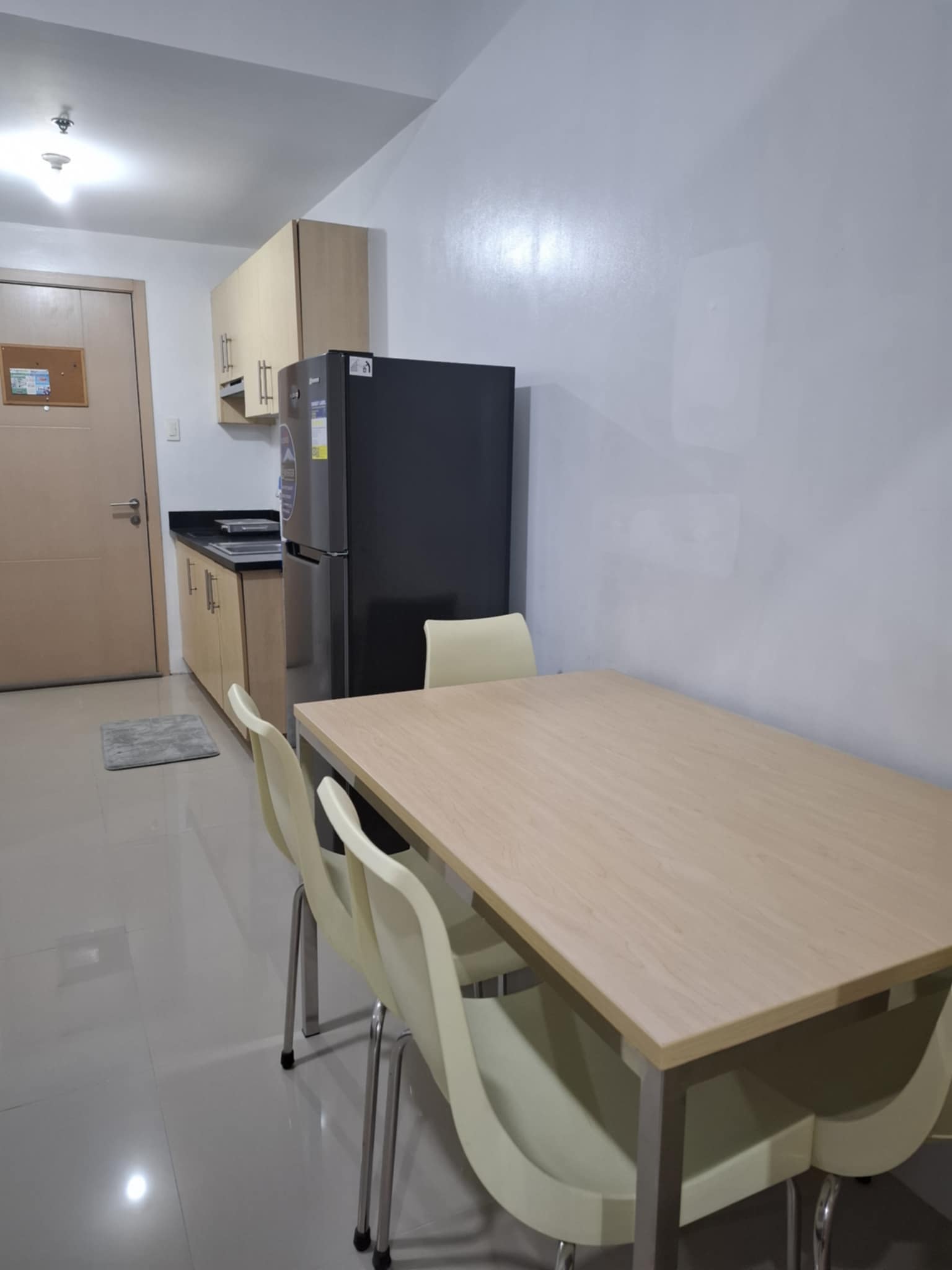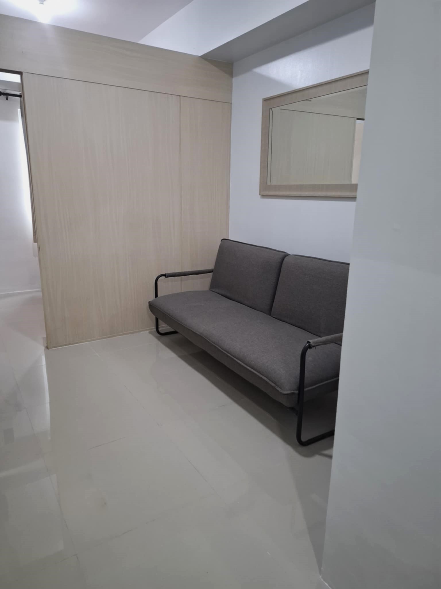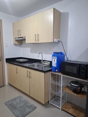 1 Bedroom. Floor Area: 25.52 sqm. Fully Furnished newly repainted with brand new inverter aircon, inverter refrigerator, microwave oven, shower heater, induction stove, sofa bed, double bed