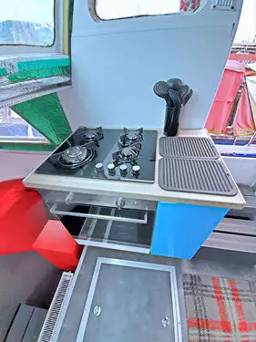 The boat has been completely rewired, fully insulated, and finished with new panelling throughout, creating a bright, welcoming interior with a clean, modern aesthetic.