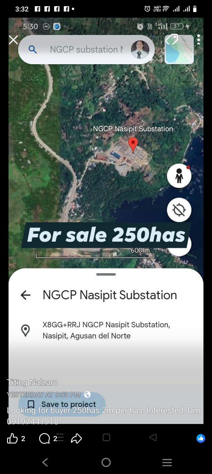 Looking for buyer 250has 2m per has. Interested. Dm 09197441918