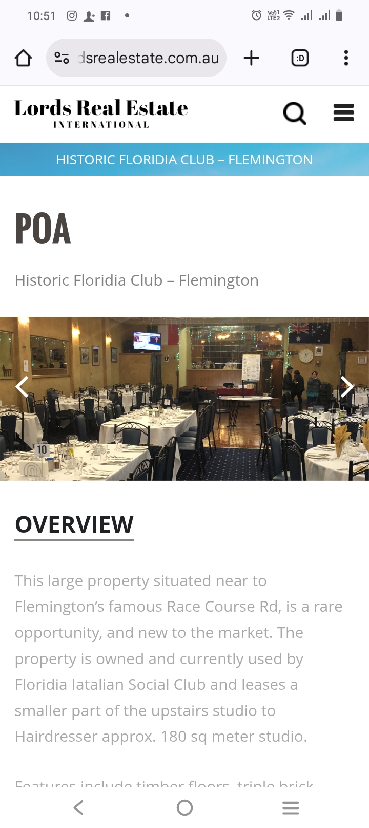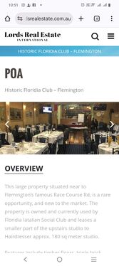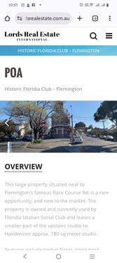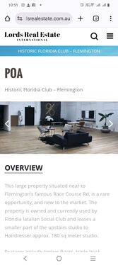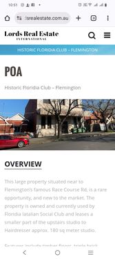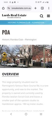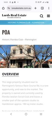 This large property situated near to Flemington’s famous Race Course Rd, is a rare opportunity, and new to the market. The property is owned and currently used by Floridia Iatalian Social Club and leases a smaller part of the upstairs studio to Hairdresser approx. 180 sq meter studio.
