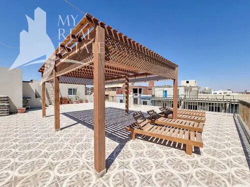 There is communal pool and roof terrace with pergola with fantastic sea views.