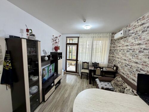One Bedroom apartment located on the ground floor in complex Sorento Sole Mare. The complex is located in a quiet area between the resorts of Sunny Beach and St. Vlas at 300 meters from the sea and the beautiful sandy beach. Sorento Sole Mare is a new built gated complex with big swimming pool with children’s section, located among green areas, reception, spacious lobby, playground and parking.