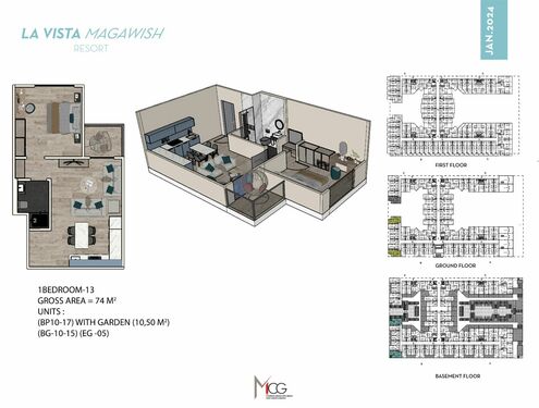 - 1 bedroom, 74sqm