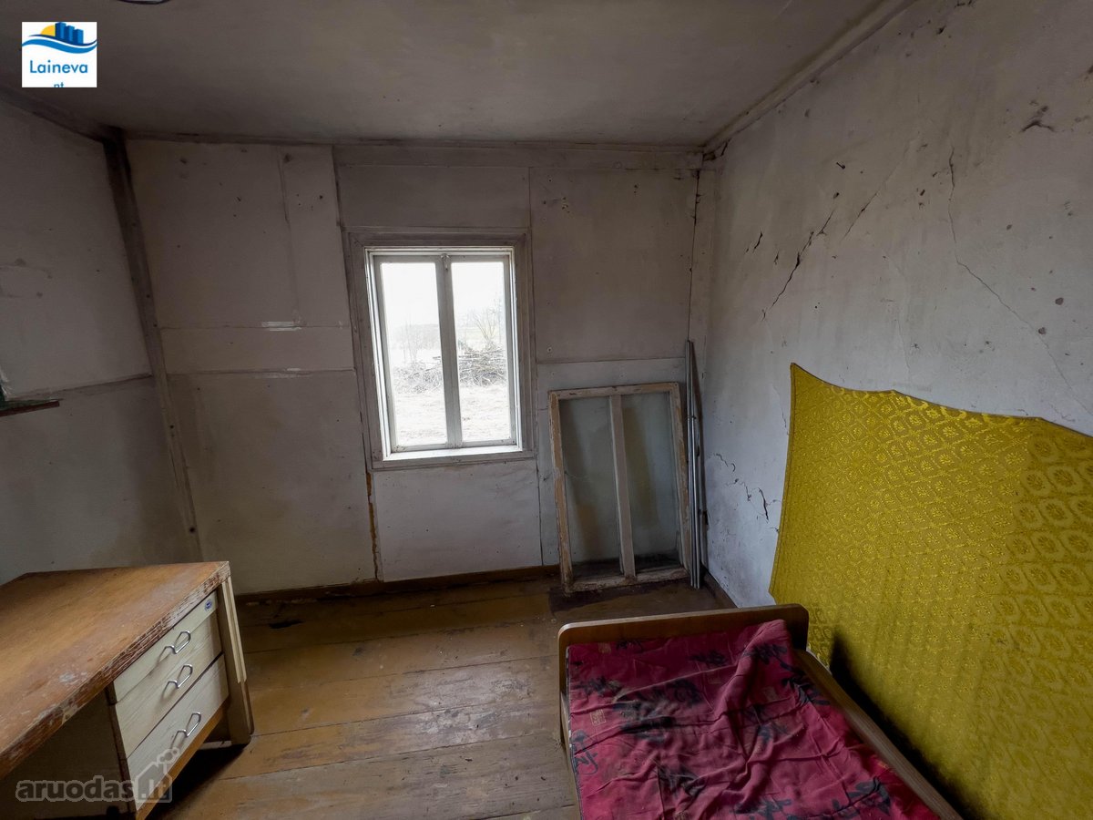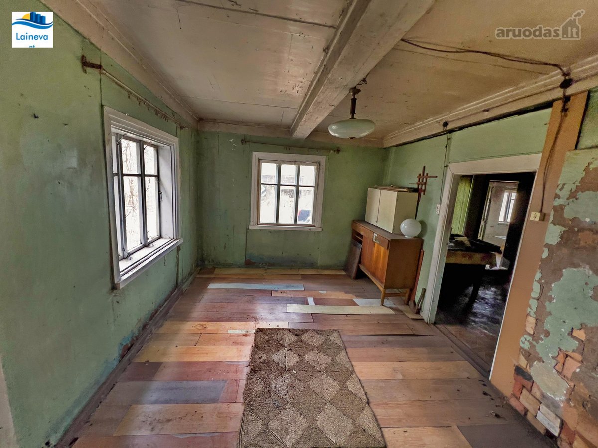 The house in a hamlet with no neighbours around for at least 200 metres. On a plot of land that is nearly one acre. The house is old wooden structure and needs refurbishment, the barn and log house are in better condition but would need extensive repairs to restore. Interesting project for someone since both barn and log house feature authentic local building features. The house is a few hundred meters away from the small local river. Town Rokiskis is the nearest town with all amenities (schools, hospital, music academies, factories, swimming pool, reabilitation centre, swimming lake & sports grounds, as well as provider of majority of local jobs).
