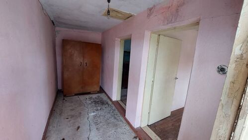 Main building: stone and brick house with an underground floor/cellar. The layout consists of 2 bedrooms, a wet room (for building a bathroom with a toilet), a living room and a separate kitchen with an oven, a total of about 60 sq m.