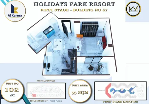 - 1 bedroom, 55 SQM