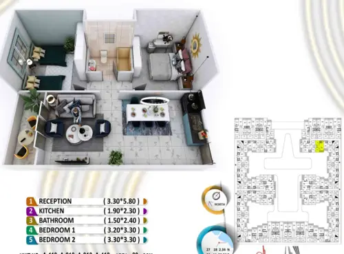 • 2 Bedrooms 🛏 | 1 Living Room 🛋 | 1 Bathroom 🚿