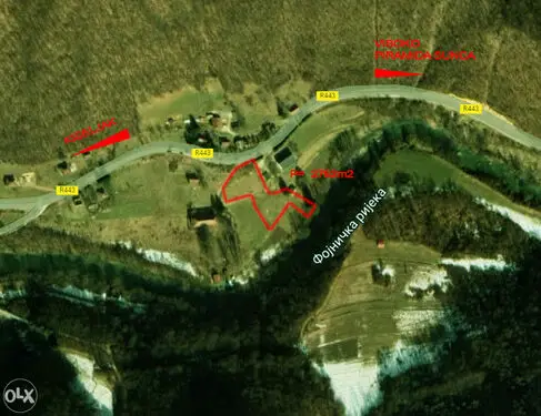 Attractive land for sale, size 2762 m², located on the regional road Visoko - Kiseljak, equally distant from both towns with parks, shopping centers, mineral water, archeological sites and other amenities. The capital city Sarajevo and the international airport are just 30 km away. Access to the property is from the regional road. It is important to note that the property has access to the beautiful Fojnica River. Most of the property is in an urban zone, so construction is possible after converting the land. The area features untouched nature and a very peaceful environment where one can enjoy tranquility, a beautiful view, recreational activities, and more. A very favorable price of 18 EURO per m2 makes this property particularly attractive, as its potential represents true value for this money.
