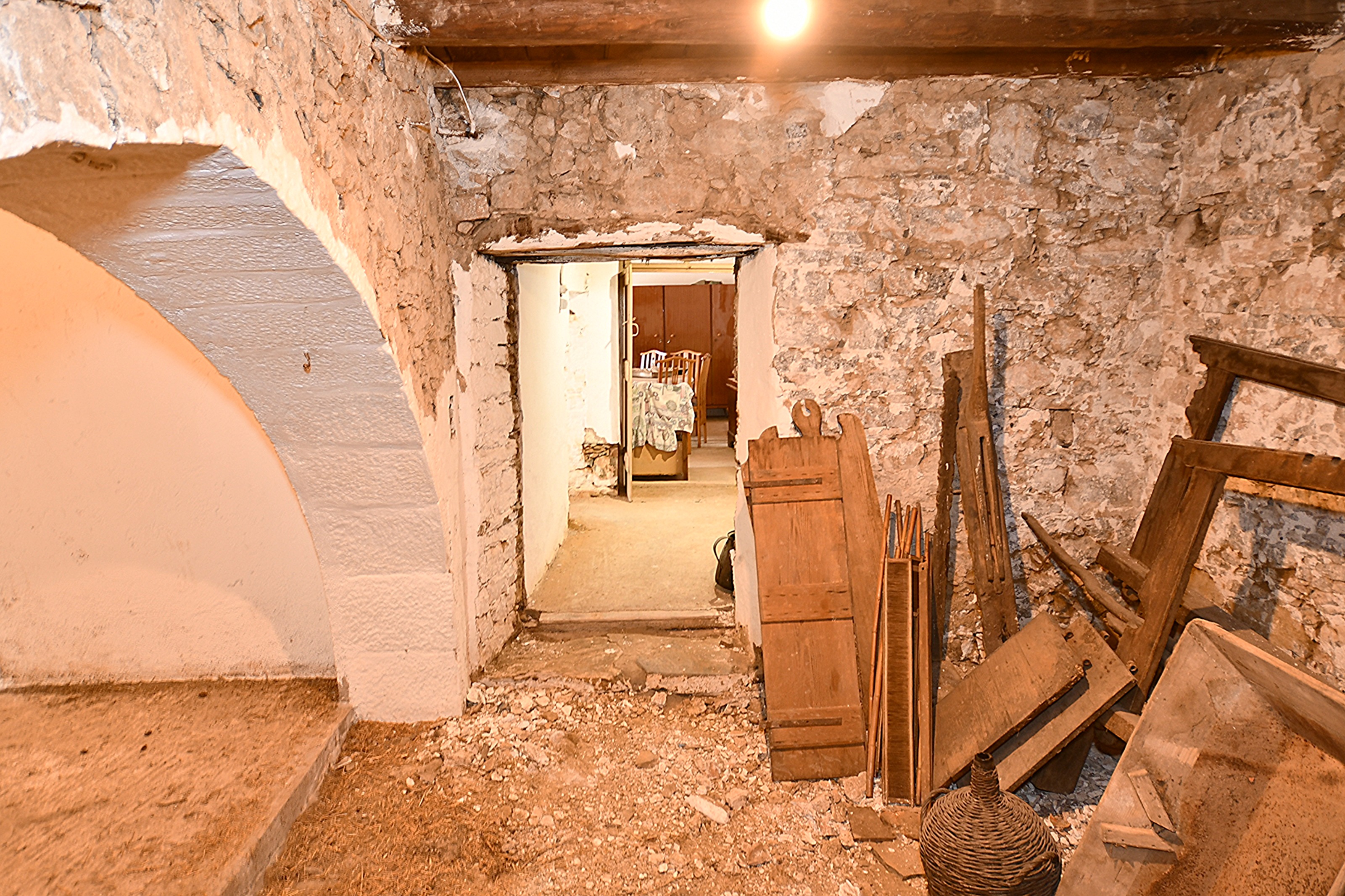 A spacious old house for renovation tucked away behind a private entrance in the centre of the village of Limnes, East Crete. The main part of the house is on 2 levels and has 4 rooms on the ground floor, with a further 3 rooms on the upper floor. There is an outside WC and an adjacent small stone building comprising 2 small rooms.