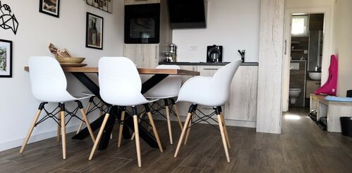 In addition to the spacious living room, which forms one whole with the dining room, there is a kitchen, a separate bedroom, a modern bathroom and a terrace with a wonderful view of the slopes of Kopaonik. The kitchen is fully equipped with built-in Gorenje Lux appliances (plate, oven, hood, built-in refrigerator).