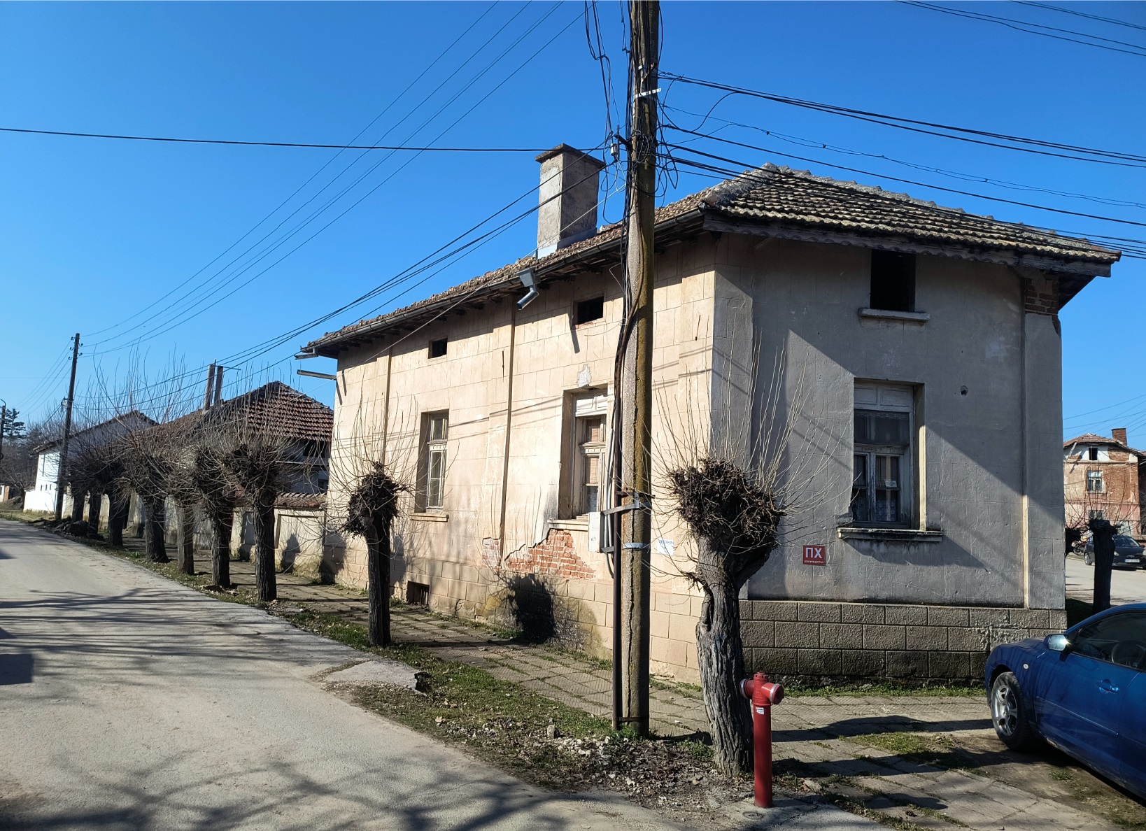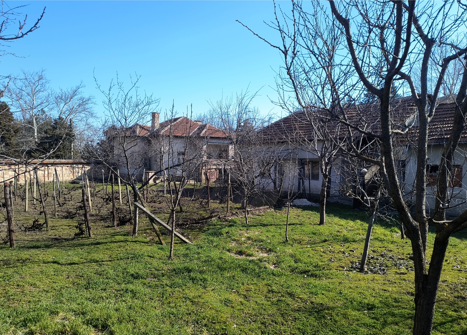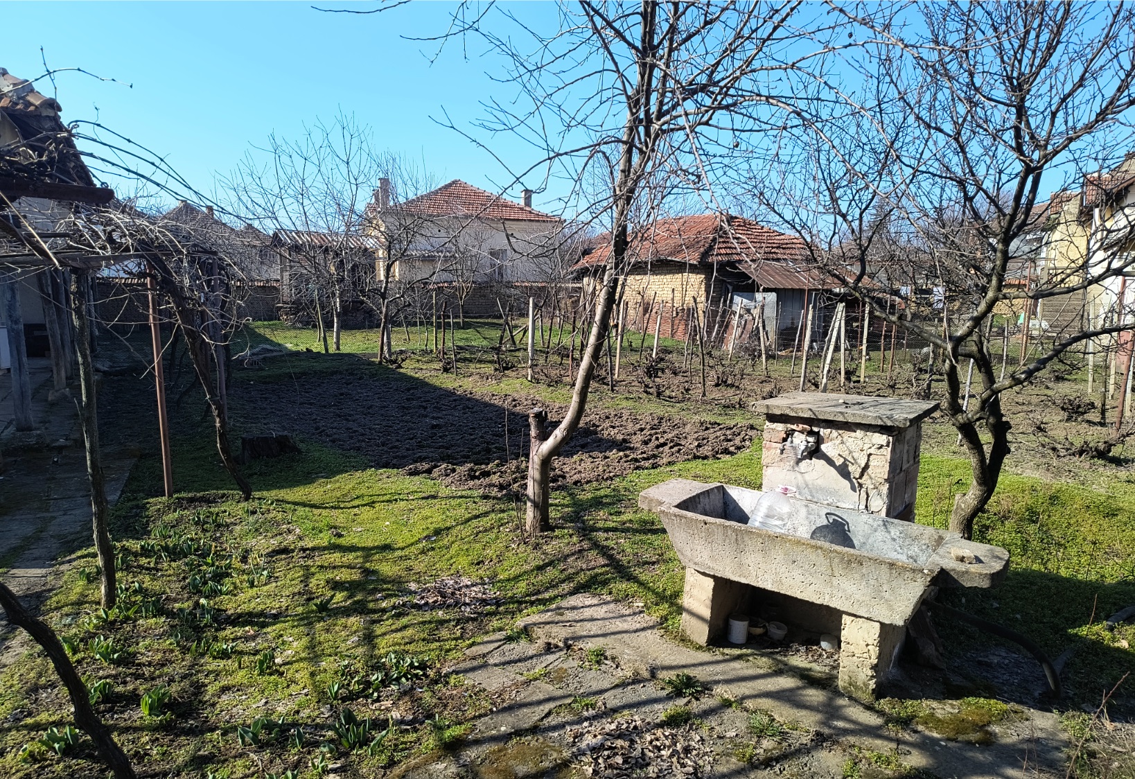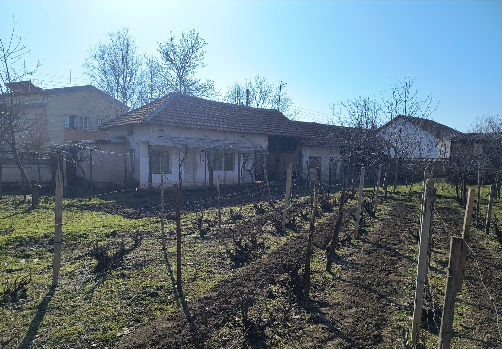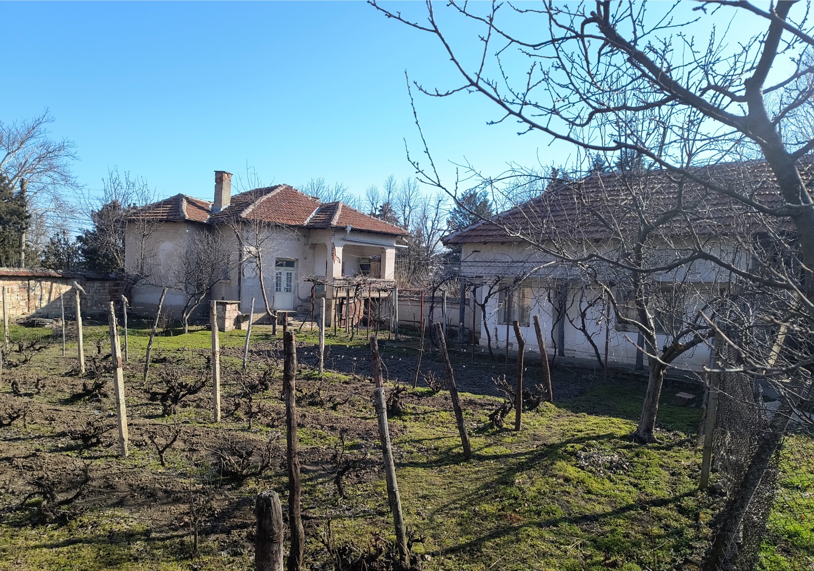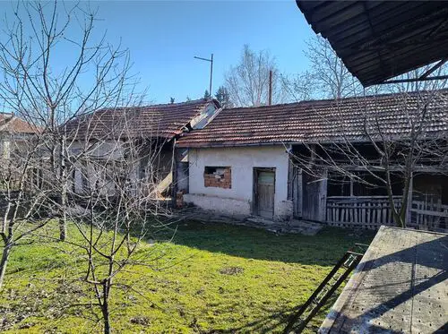 Old country house with annex, barn and land situated in a quiet village 40 km north of Vratsa, Bulgaria. The house has one floor and holds kitchen, living room, dining room and bedroom as well as storage premise. Not far away from the main building is the annex which is attached to the barn. The annex holds living room with kitchenette, bathroom and one bedroom. The near barn has two storage premises and covered parking area for one vehicle. The buildings come with a 1200 sq.m. plot of land which has many fruit trees, vineyard, flower patch and some space used as vegetable garden. The house is situated close to the center of the village and is in proximity to the mayor`s office, the local post office, main square, shop and bar. The surrounding area of the village consists of several hills, small pine forest and the rest of it is mainly fields. There is also a lake just outside the settlement. The village is situated 10 km away from the nearest town. There one can find pharmacy, doctor, gas station, police station, supermarket, construction material store, shops for food, clothing, tools, etc. The town is also the seat of the local council so it provides administrative services, bank branch and ATMs as well as regular bus transport to the regional capital city Vratsa, which is about 40 km away from the house, and to the national capital Sofia. Old rural property with good potential for further development and use.