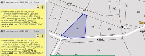 The property is two adjacent RLPs, sold together. According to a notary deed, there were houses, but according to the cadastre, they do not appear because they were demolished. This means one could easily start building since water and electricity have been settled on the site. Access through an asphalt street. Panorama!
