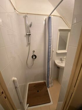 You enter into the ground level bed room or storage room, comprising washer/ drier and bathroom with shower.
