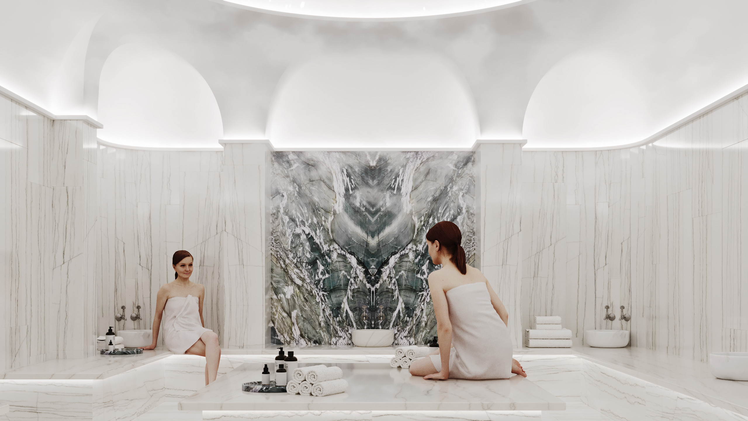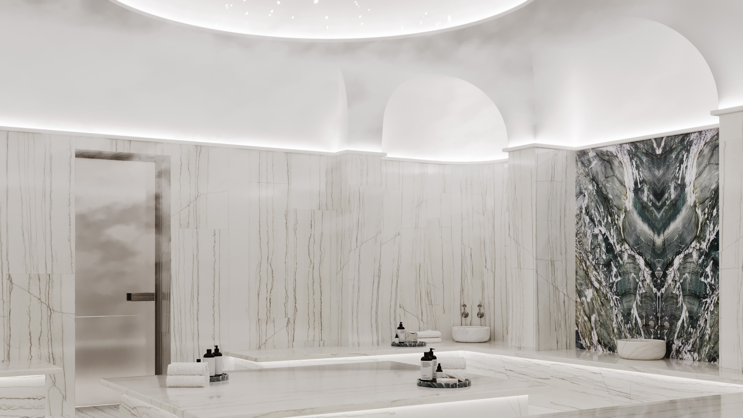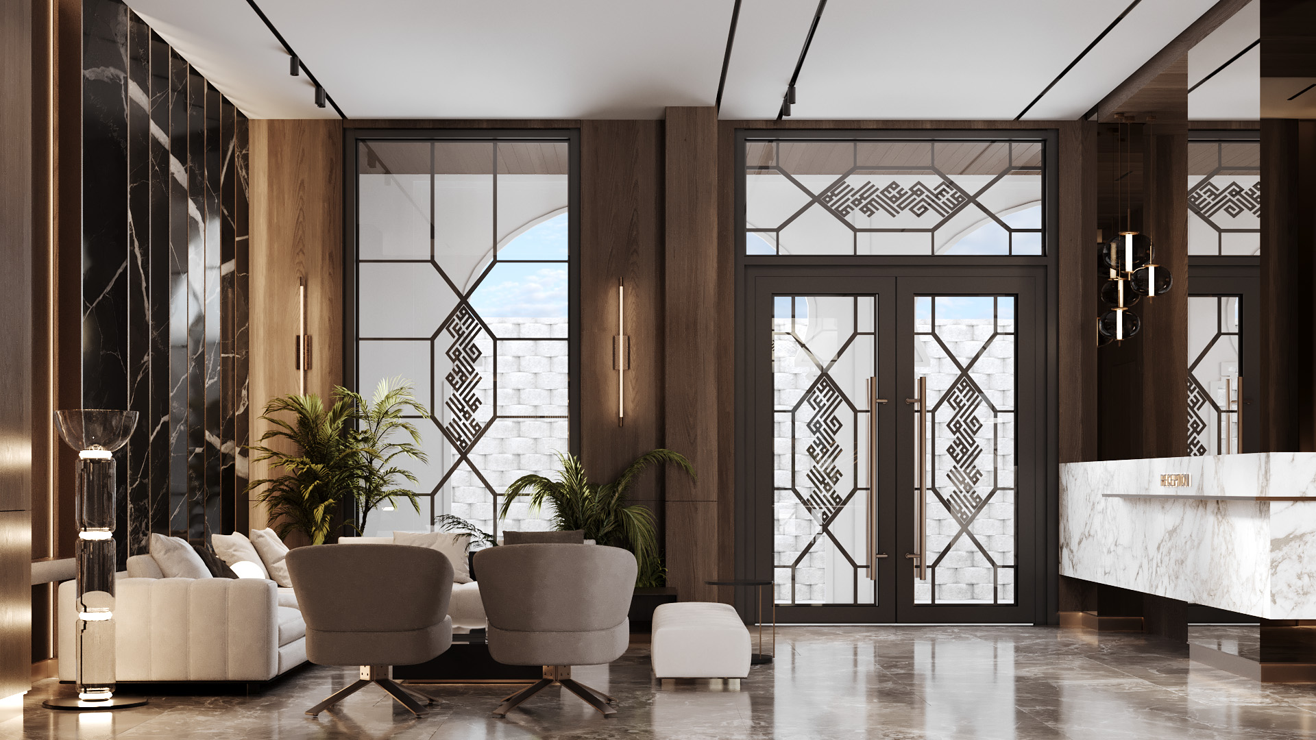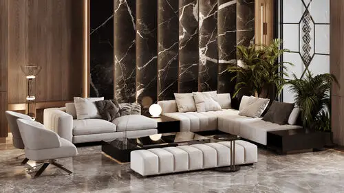 Flooring: Elegant porcelain tiles and luxurious marble finishes throughout