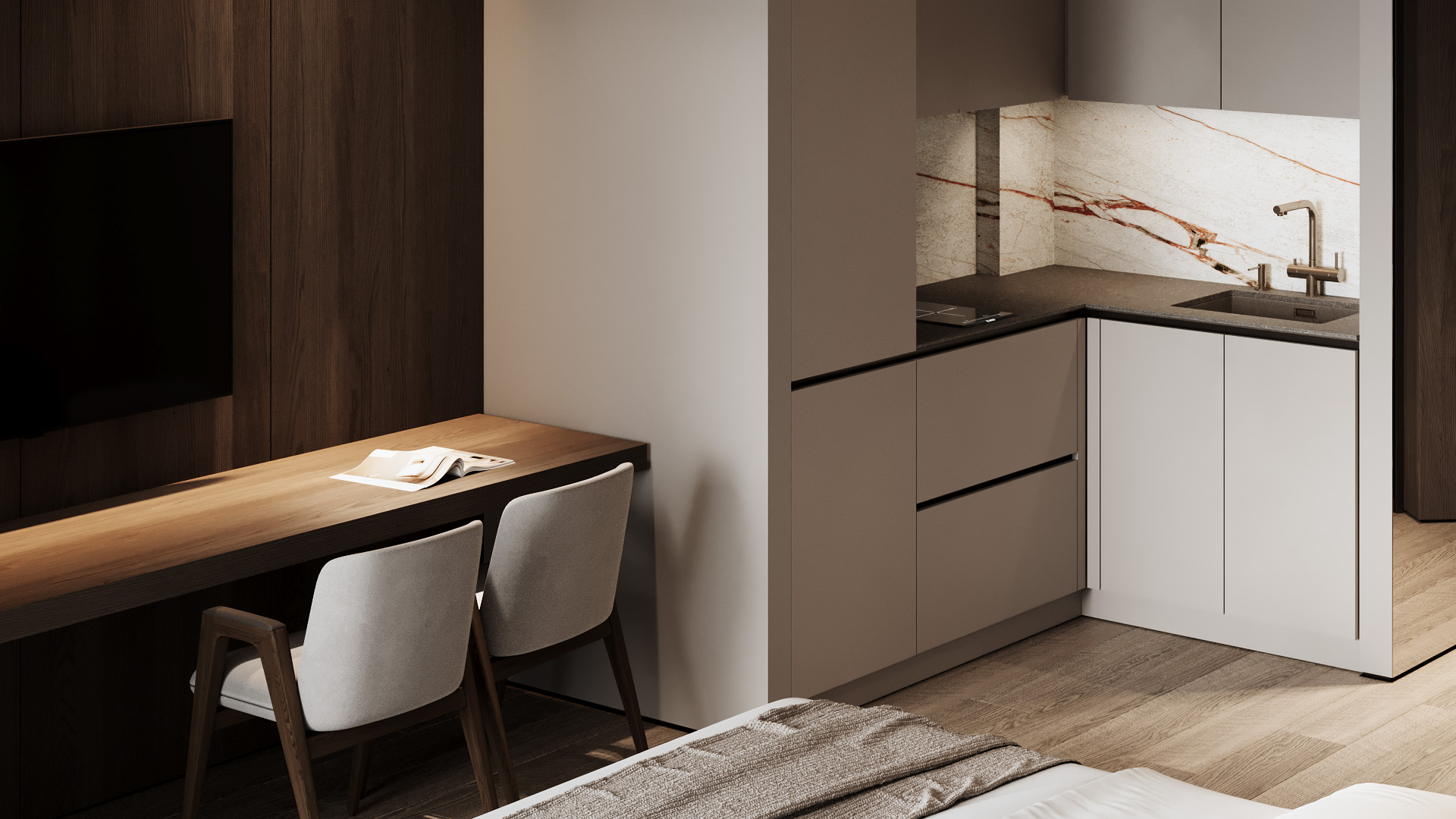 Kitchen: Fully equipped with a premium built-in kitchen set