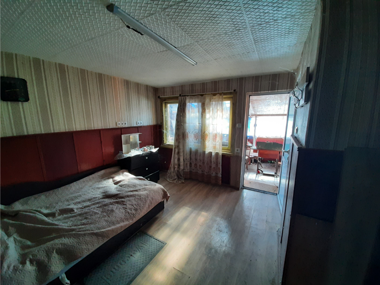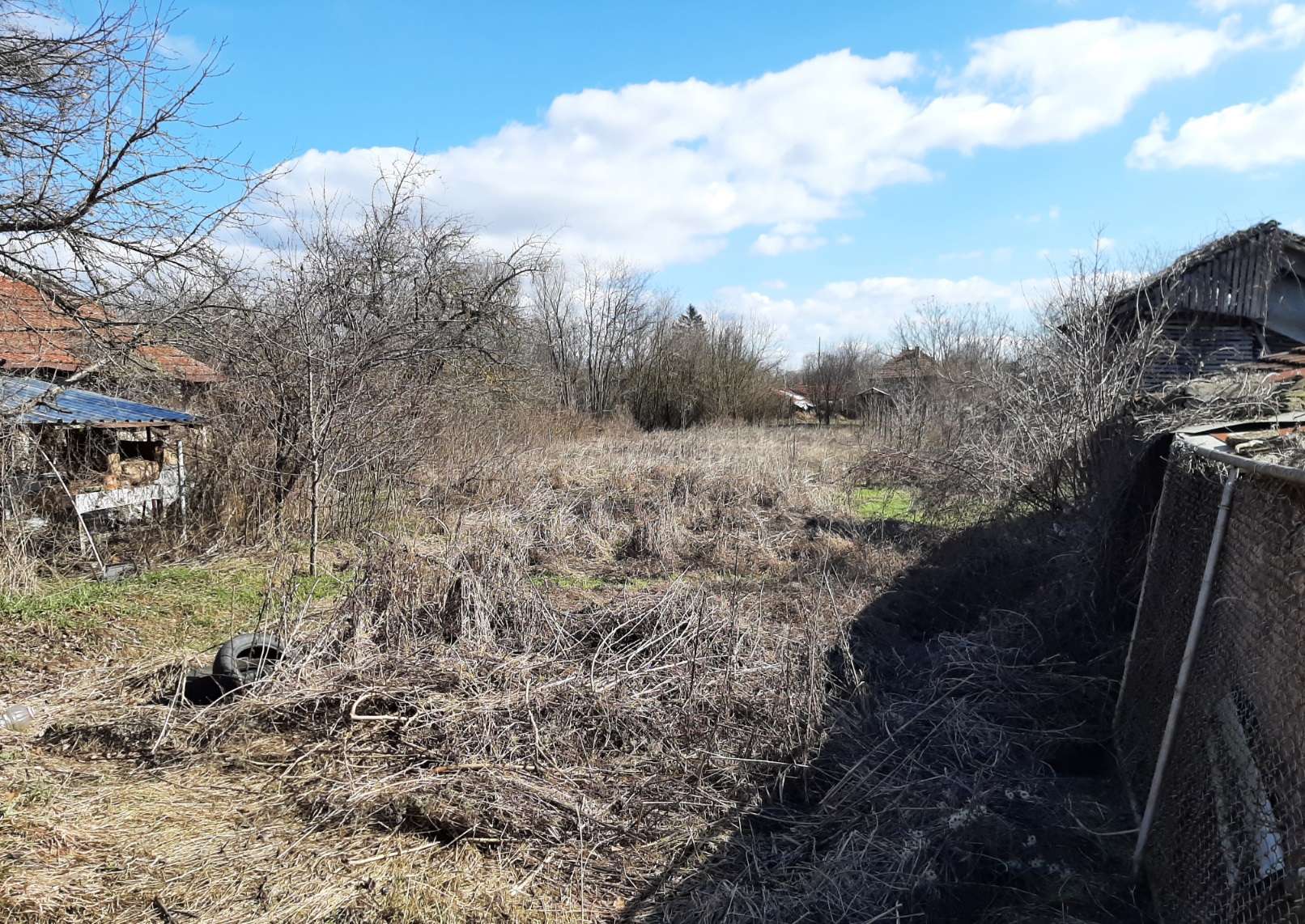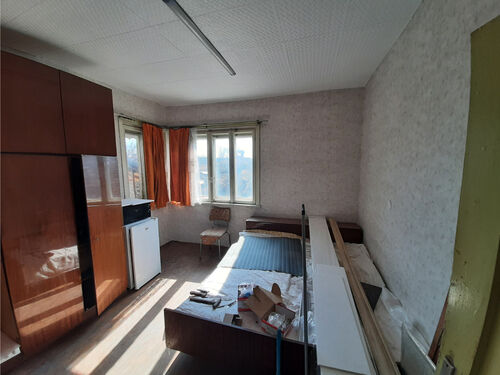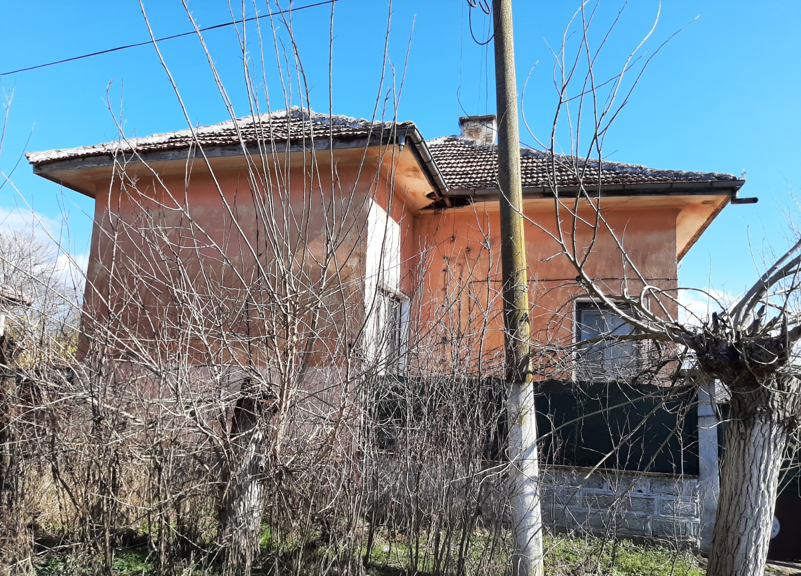 Country house with annex, garage and plot of land situated in a village near river 60 km northwest of Vratsa, Bulgaria. The property is located in a quiet spot within the limits of the village. The main building has one floor and consists of lobby, corridor, premise for kitchen, living room, two bedrooms, storage room and shower room with toilet. Bedrooms receive passive solar heating during the year and good light as they are facing south. The house has new plumbing, new cesspit and some job was done on the wiring. The roof was inspected and the bathroom in the main building is brand new. There are also new floors in the corridor and the kitchen inside the house. Wring was revised and updated. Next to the house is the annex which holds outdoor sitting area, shower room with toilet and living room with kitchenette. The property has main water supply as well as a private well which is conveniently located close to the house. There is also a garden tap not far away. Beyond the summer kitchen there are several sheds with light and electrical connections. They have been used for animal shedding and furniture storage, as well as workshops. The garden beside the house is fenced too. To the left of the property is a mechanics garage opening directly out to the street with secure steel doors, cupboards and shelving, a work channel cut into the floor and plenty of room for parking up to three cars beside the garage off street behind a wide double gate. Beyond it are several sheds for animal raising and storage. Garden plantings include herbs and fruit trees, with apples trees of different varieties for eating and cider production, sloe plums for gin, cherries for cherry liquors and red and white table and wine grapes planted. There are also some bee frames and equipment, with bees having been kept on the property in the past for honey and mead. There is a cask and bottles in the basement which is ideal for winemaking. The center of the village is about 10 minutes away by foot from the house. There one can find a grocery store, café-bar, the local post office, school, library, park and mayor`s office. There is a small river passing through the area and joining a bigger one about 3 km outside the settlement. There one can find plenty of nice spots for fishing, camping and hunting. Easy walking distance to a children’s park play area and the local kindergarten. Rural property with lots of potential at a good price ready for someone to come in and finish it.