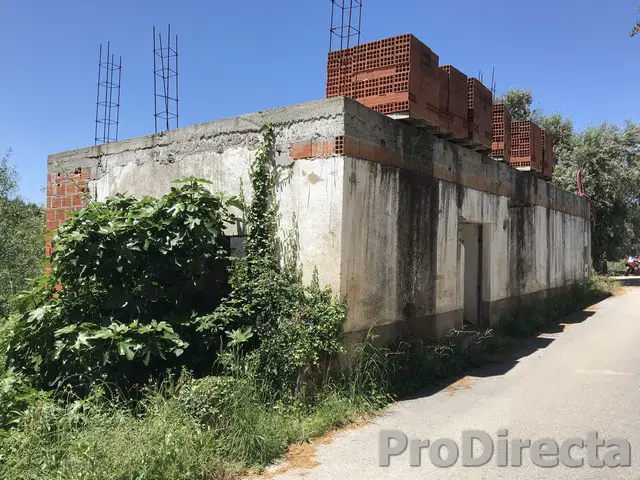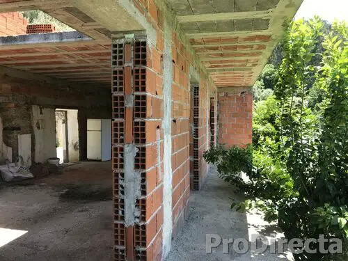 Set on a hillside position, with a generous parcel of land - 58m2 + 100m2 - the work done so far has combined the original stone with new brick built walls; the laying of concrete floors and building a balcony, so, should you wish, living rooms could be situated on the 1st floor to take full advantage of the beautiful views. It's an empty shell, no internal walls to knock down, so no rubble to dispose of; it's situated close to a tarmac road, so no problems with having materials delivered, and where water and electricity can be easily connected. The building has a total habitable area of 112m2 over the two levels, a good size space to work with.