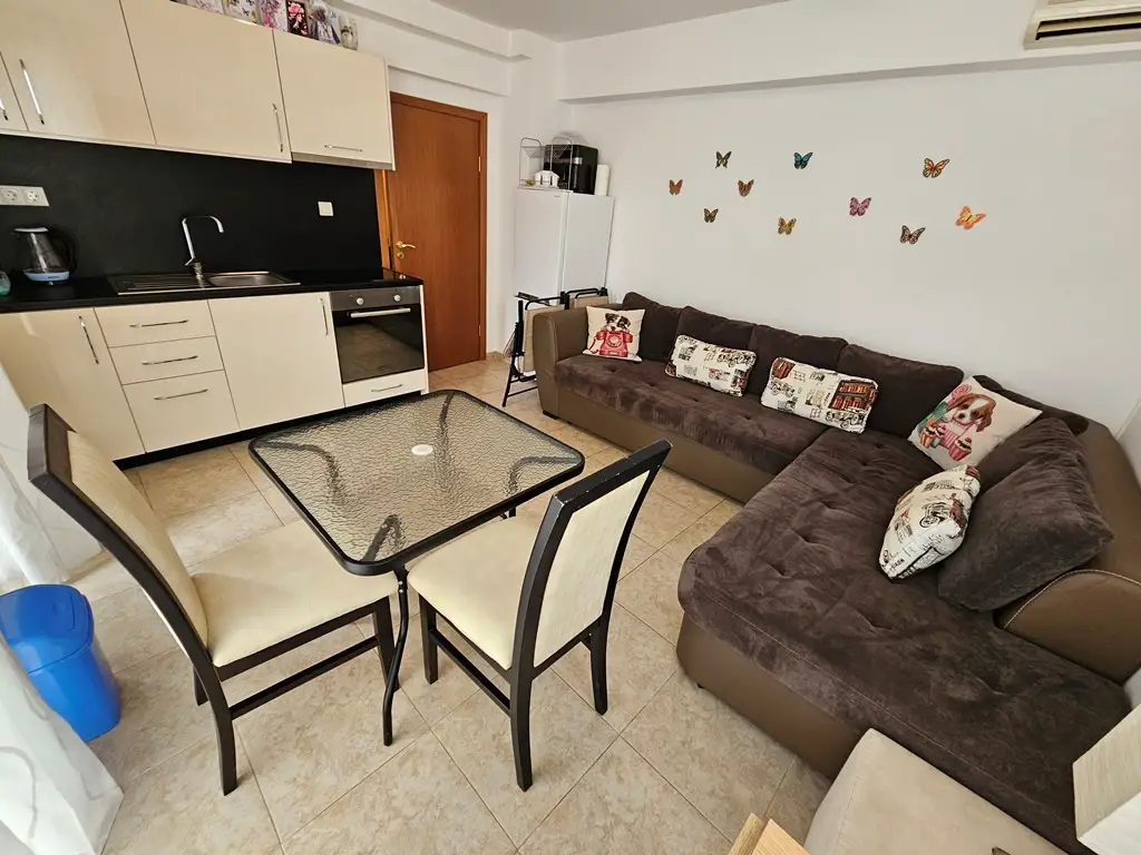 For sale is this one-bedroom apartment located on the 2nd floor /with lift/ in complex Compass in Sveti Vlas. The complex is located just 350 m away from Marina Dinevi – as well as from the magnificent beaches of Venid Beach – rated with a Blue Flag. The complex offers a swimming pool, security and video surveillance. The complex is on a short walking distance from various shops, bus stop, bakery, the beach and of course the popular yacht Port with all its shops, restaurants and entertainment.
